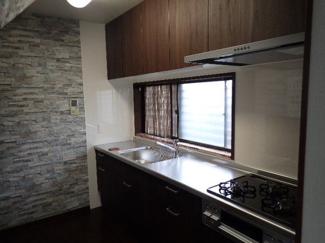 新規のキッチンを取り付け、正面やサイドにキッチンパネルを設置することで、見た目も綺麗になりました。