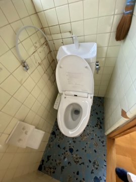 "隅付タンクのトイレから組合せ便器へのリフォームでした。 スムーズに工事が進み、快適なトイレへとなりました。"