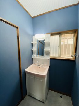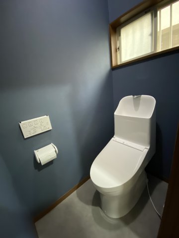 "トイレ、脱衣室の内装の色を揃えることにより空間がまとまり、以前とはクールな空間が生まれました。 "