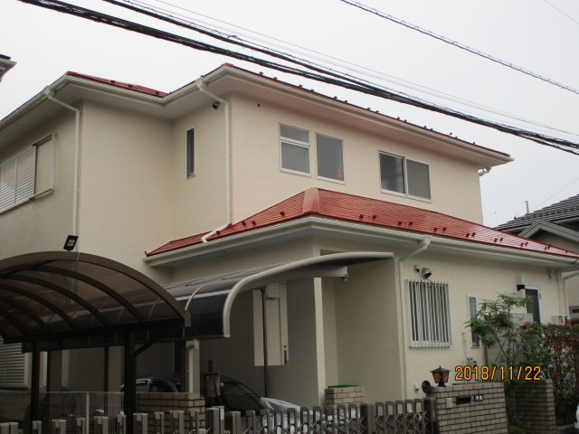 外壁・屋根の他に雨樋や破風、軒天まで塗装しました。きれいになりました。
