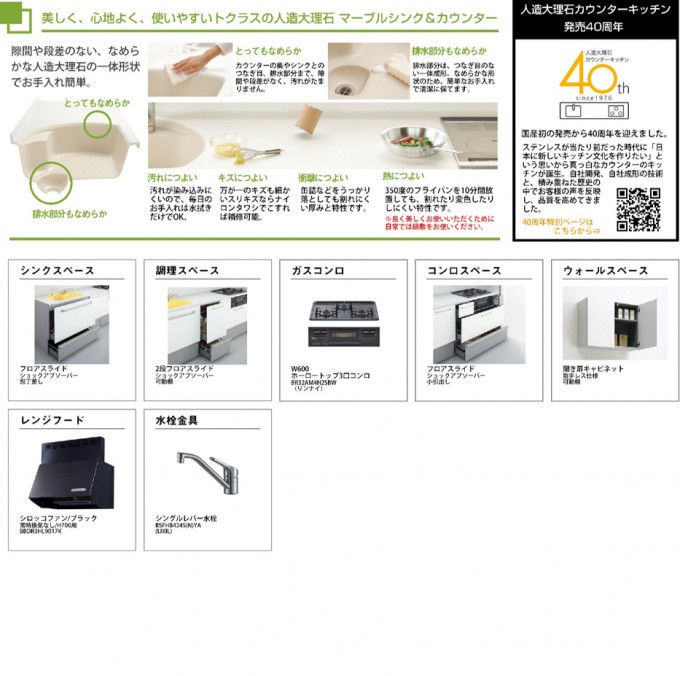 トクラス独自の人造大理石。汚れが染み込みにくいので、