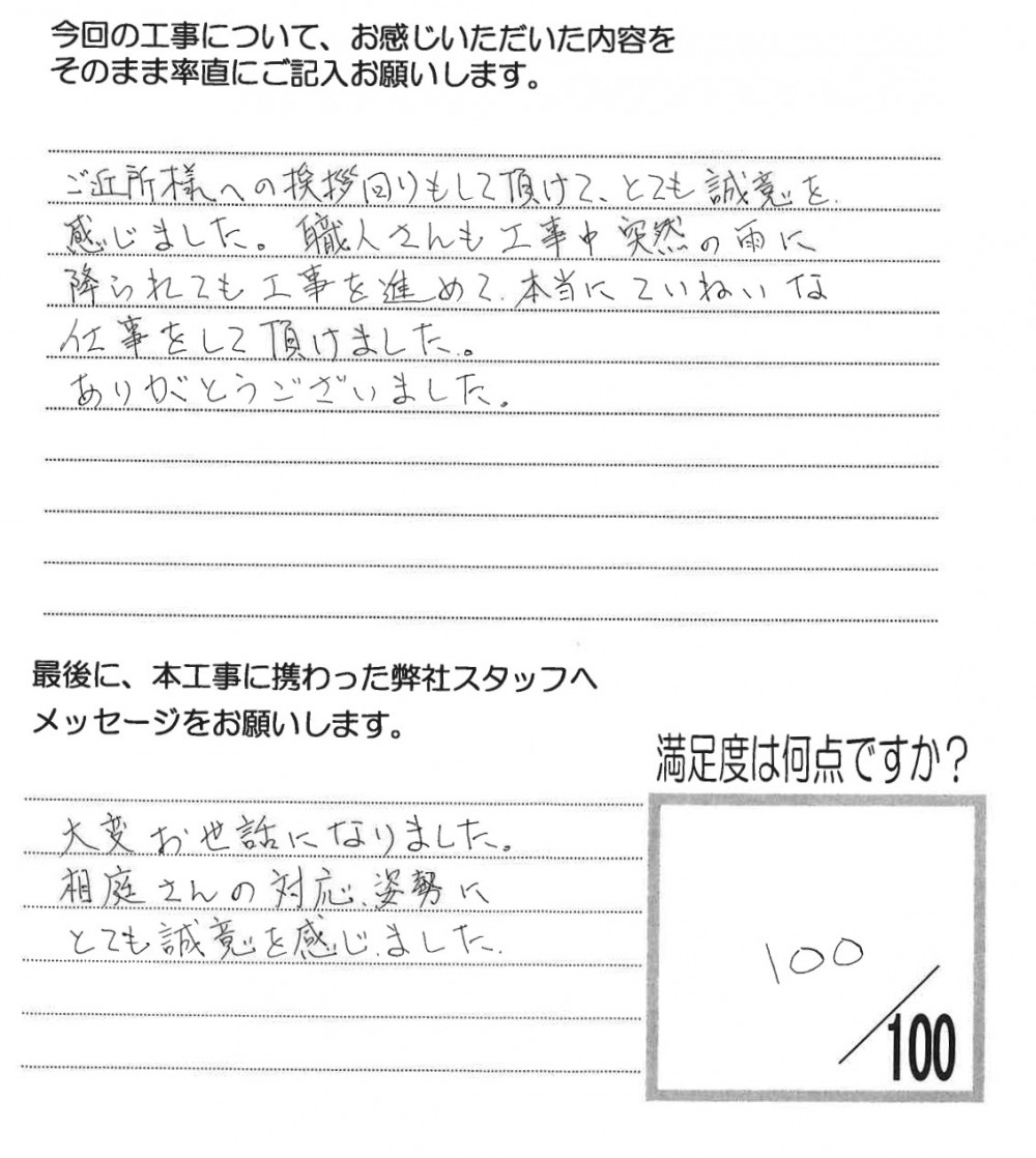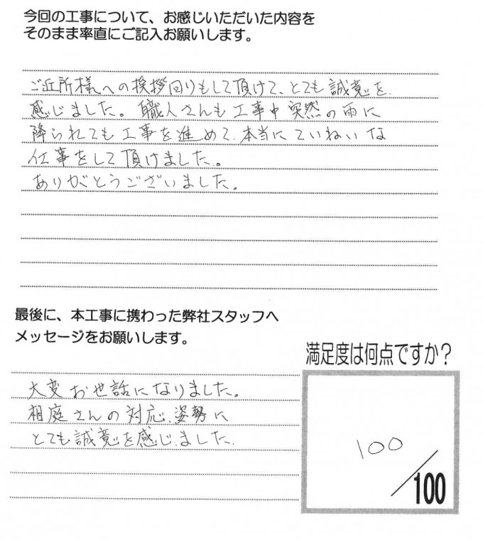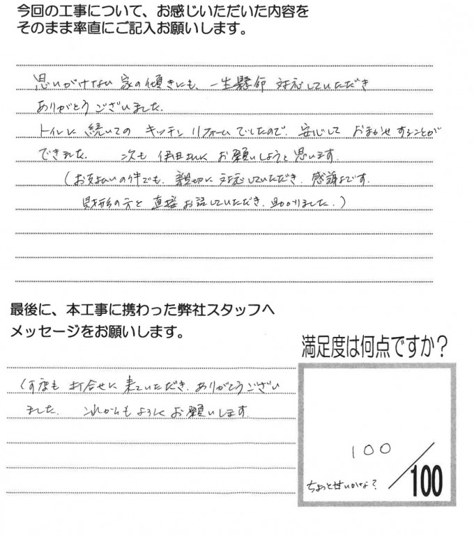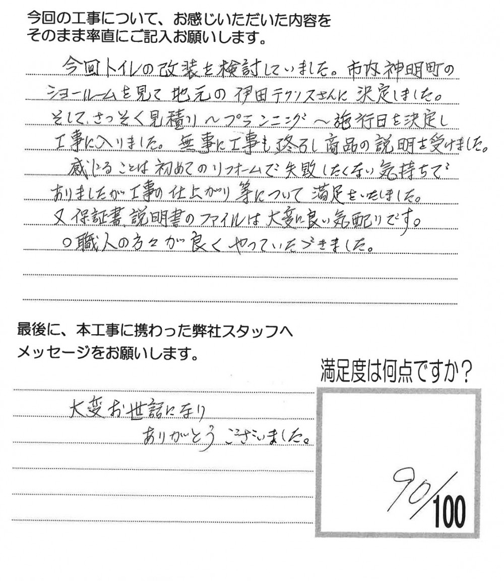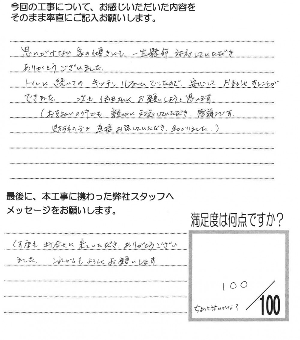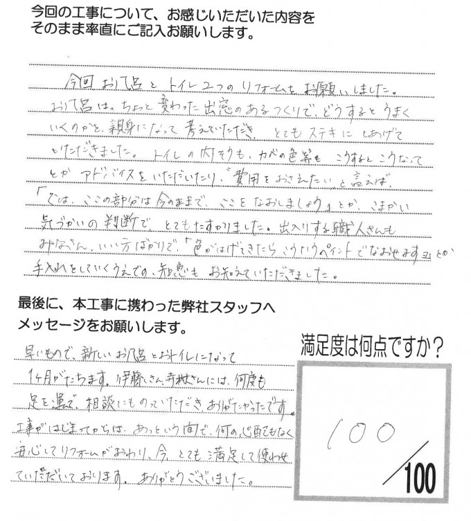 伊田リフォームをご利用された皆様から、工事完了後にお願いしているアンケート「仕事の通信簿」が届きました!