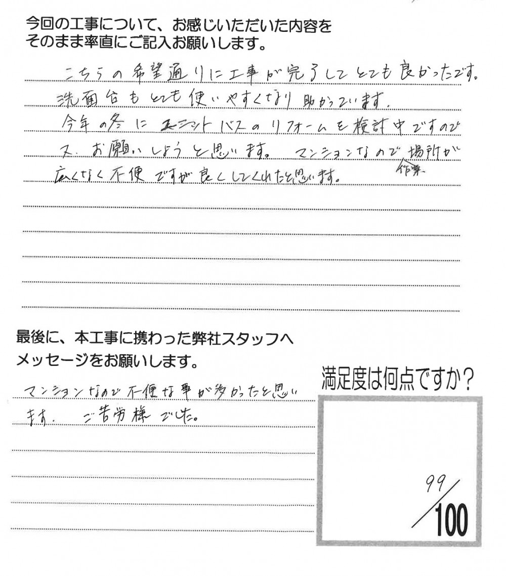 2018年5月 I様 工事内容:洗面脱衣室リフォーム