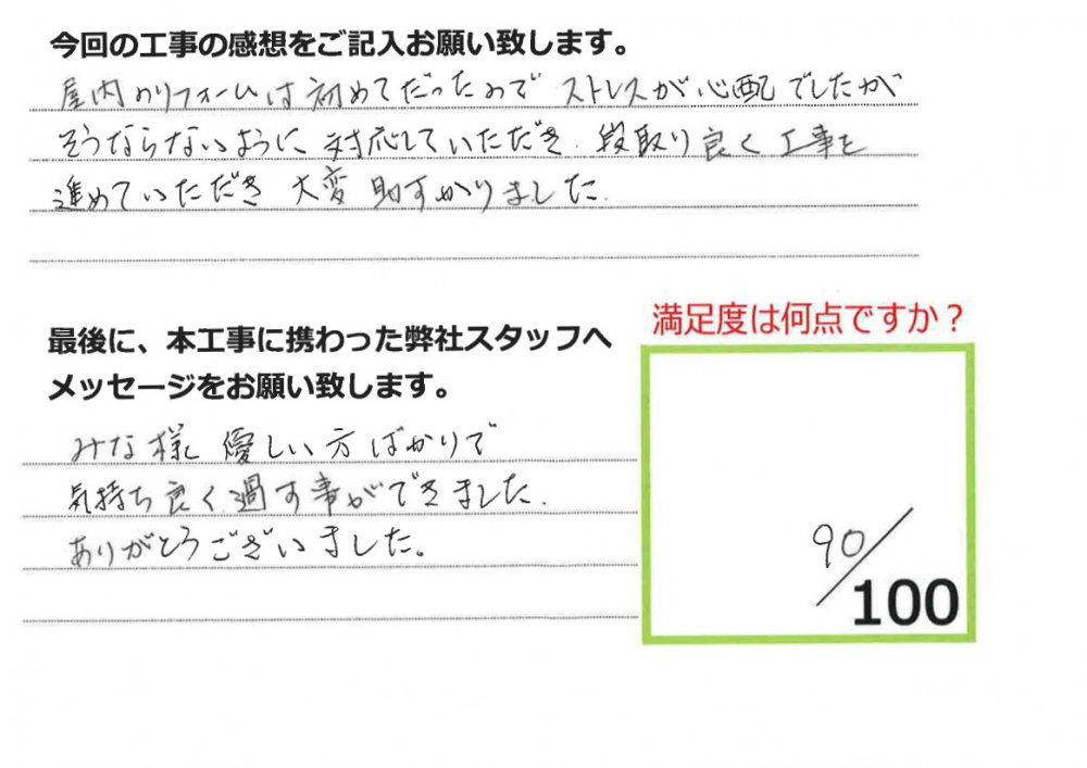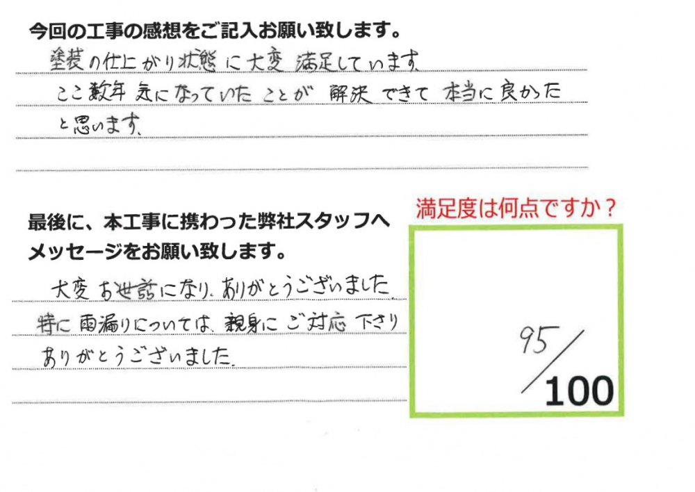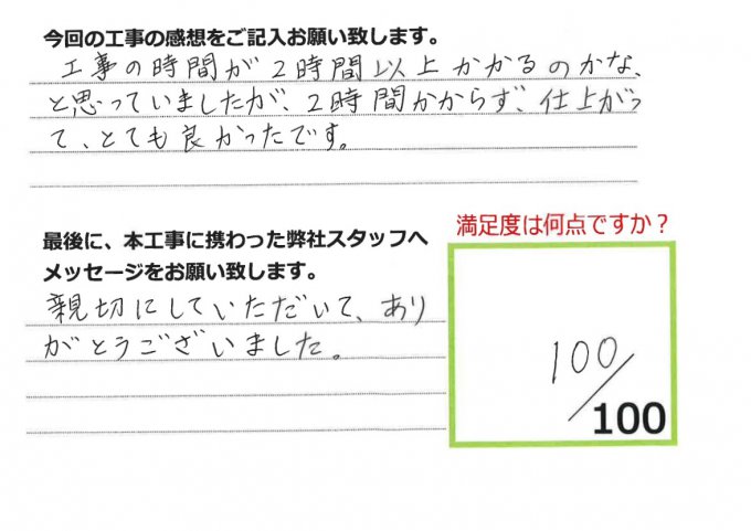 伊田リフォームをご利用された皆様から、工事完了後にお願いしているアンケート「仕事の通信簿」が届きました!