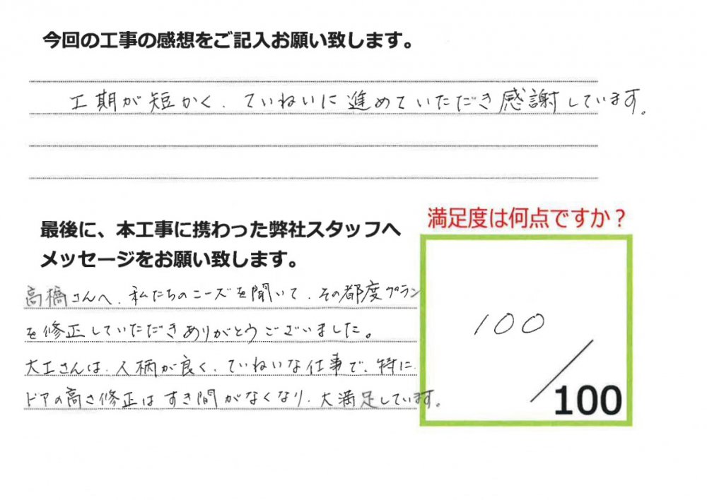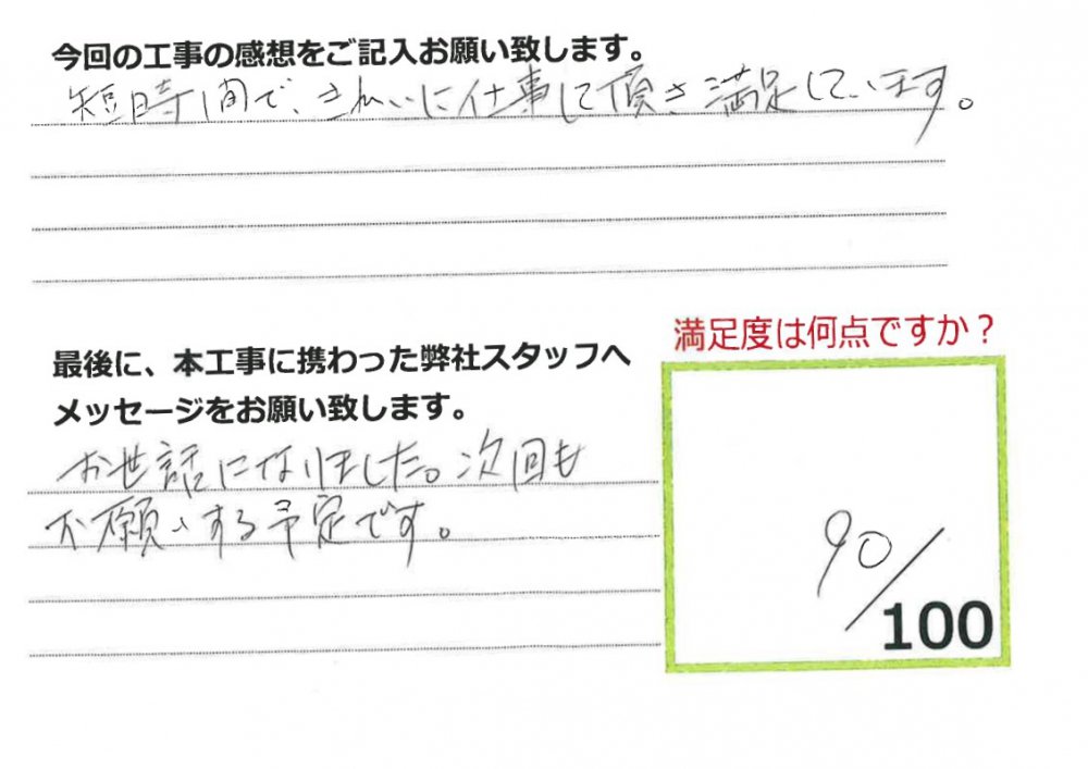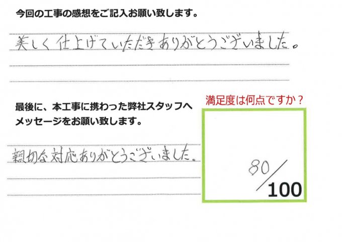 伊田リフォームをご利用された皆様から、工事完了後にお願いしているアンケート「仕事の通信簿」が届きました!