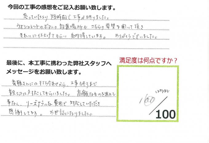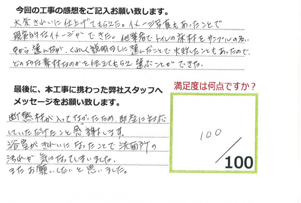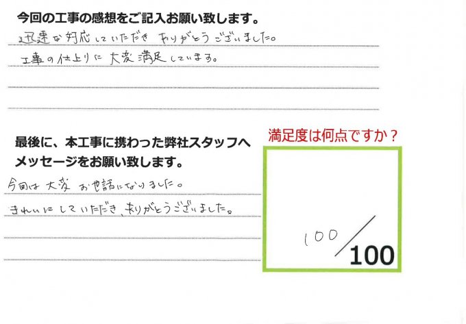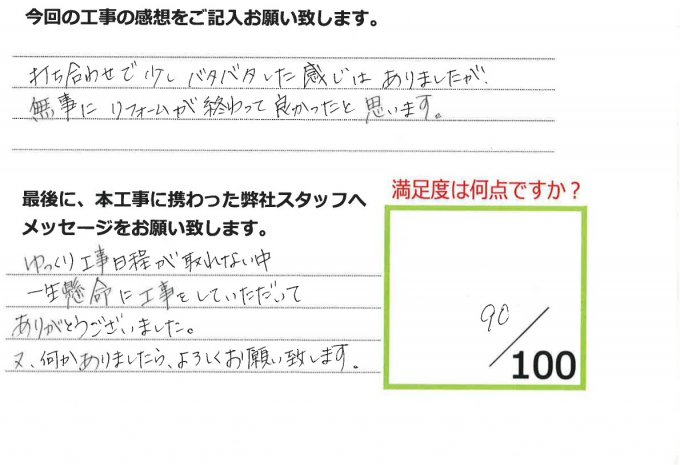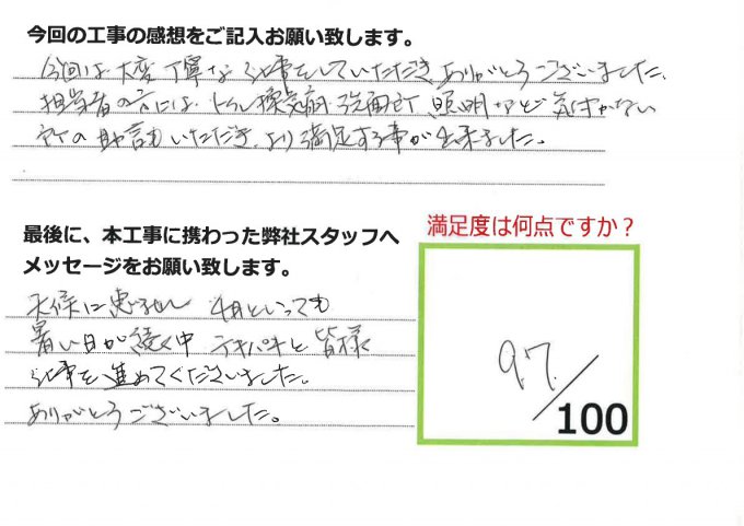 伊田リフォームをご利用された皆様から、工事完了後にお願いしているアンケート「仕事の通信簿」が届きました!