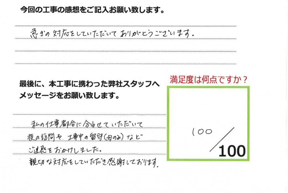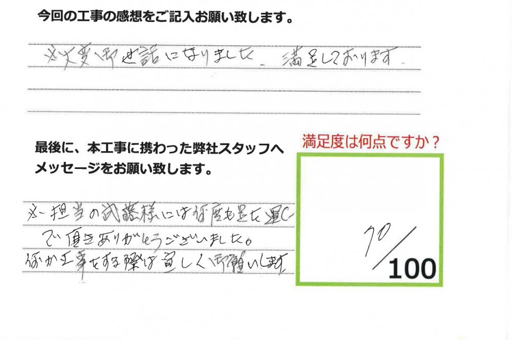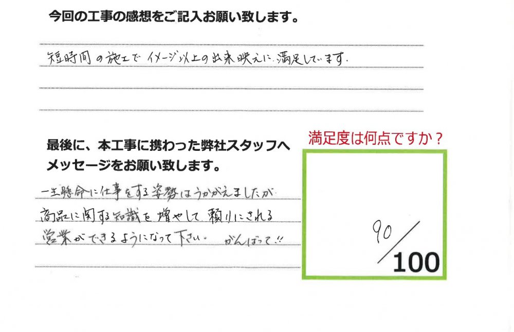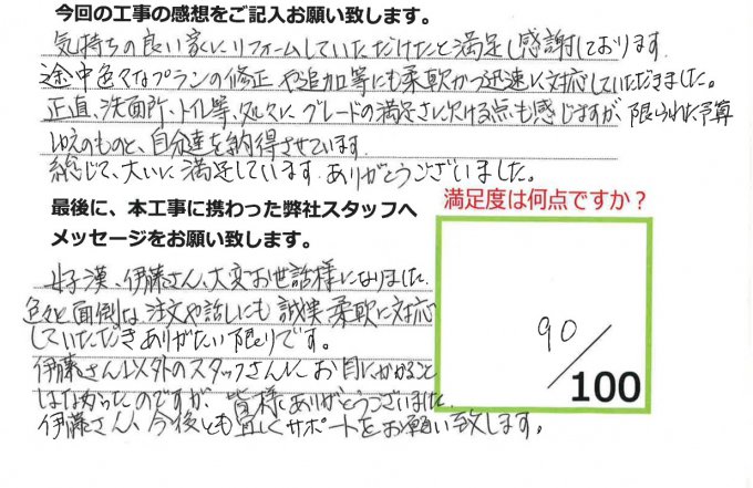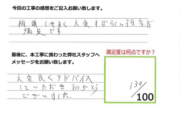 伊田リフォームをご利用された皆様から、工事完了後にお願いしているアンケート「仕事の通信簿」が届きました!