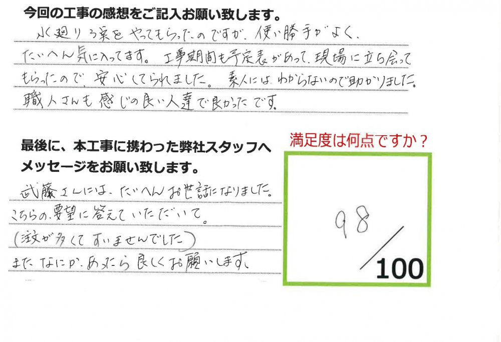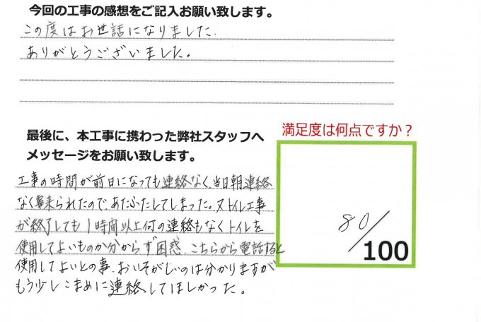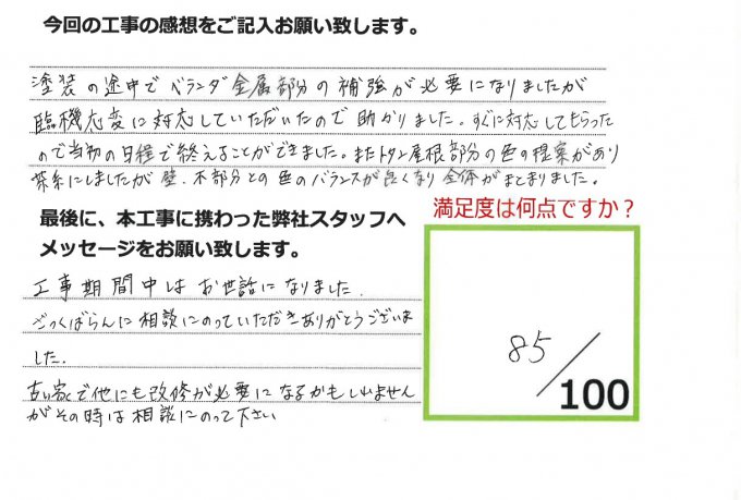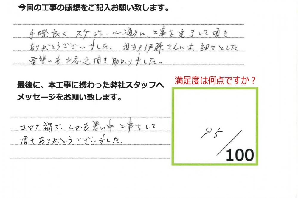 伊田リフォームをご利用された皆様から、工事完了後にお願いしているアンケート「仕事の通信簿」が届きました!