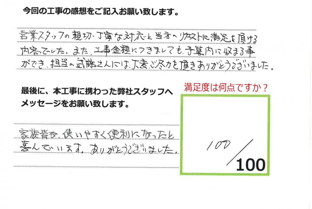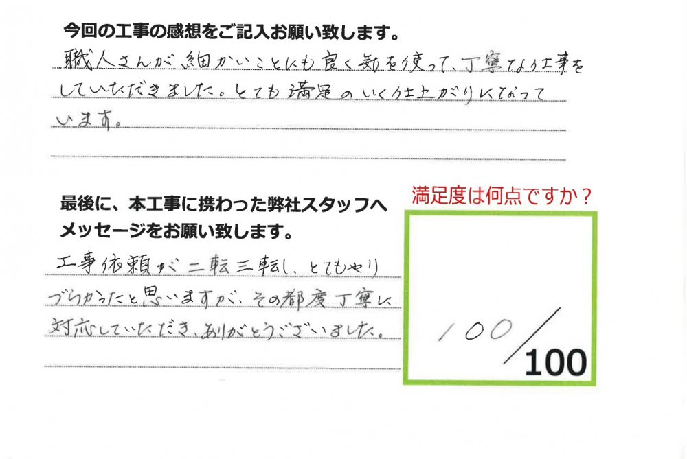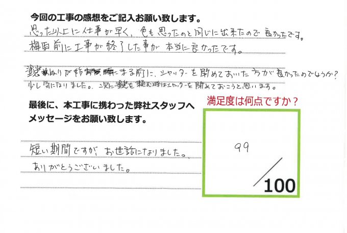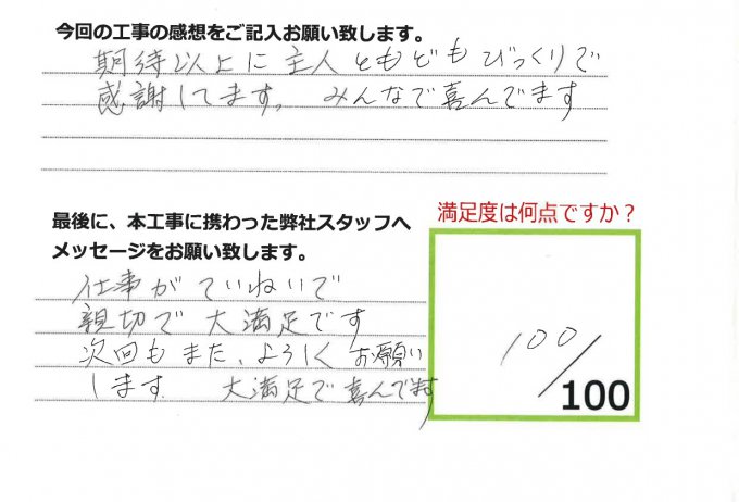 伊田リフォームをご利用された皆様から、工事完了後にお願いしているアンケート「仕事の通信簿」が届きました!